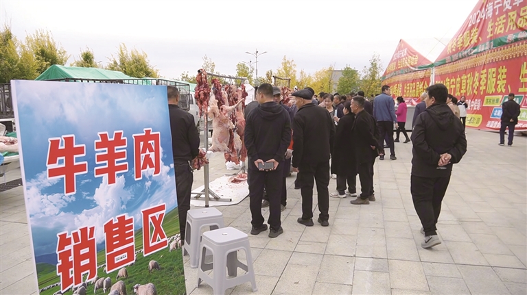 “走过路过不要错过,都是草膘牛羊,肉质鲜嫩、价格不贵,快来选购……”当日,在牛羊肉销售区,前来选购的顾客络绎不绝。商户们有的为顾客挑选牛羊肉、有的为顾客进行分割、打包、过秤……
