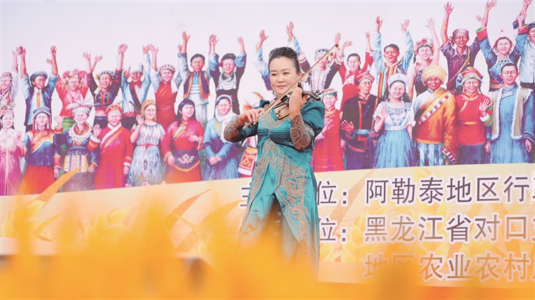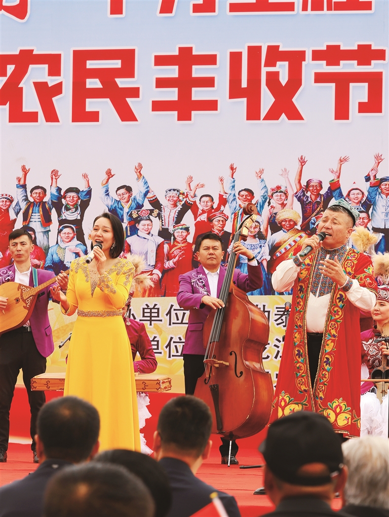 本报讯(记者 张涛 实习记者 张福新 通讯员 马尼拉·哈那提别克)9月21日,2024年“中国农民丰收节” 阿勒泰地区专场活动开幕,歌舞演员们用精彩的演出为现场群众带来了一场视听盛宴。