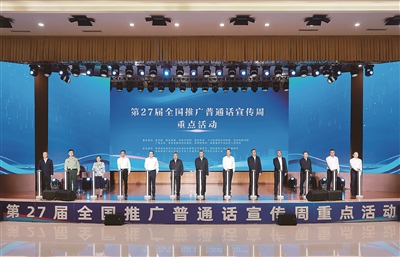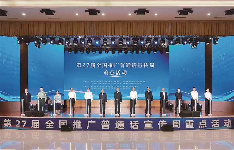 新疆日报喀什9月22日讯(石榴云/新疆日报记者 刘翔)9月22日,以“加大推普力度,筑牢强国语言基石”为主题的第27届全国推广普通话宣传周重点活动在新疆喀什举办。自治区党委书记、兵团党委第一书记、第一政委马兴瑞出席活动。教育部党组书记、部长、全国推普周领导小组组长怀进鹏,自治区党委副书记、自治区主席艾尔肯·吐尼亚孜致辞。自治区党委副书记、兵团政委何忠友出席。