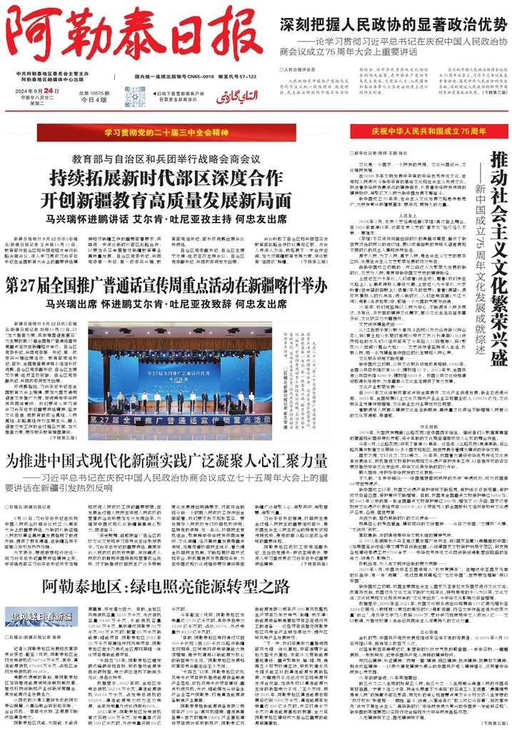 - 第27届全国推广普通话宣传周重点活动在新疆喀什举办 新疆日报喀什9月22日讯(石榴云/新疆日报记者 刘翔)9月22日,以“加大推普力度,筑牢强国语言基石”为主题的第27届全国推广普通话宣传周重点活动在新疆喀什举办。自治区党委书记、兵团党委第