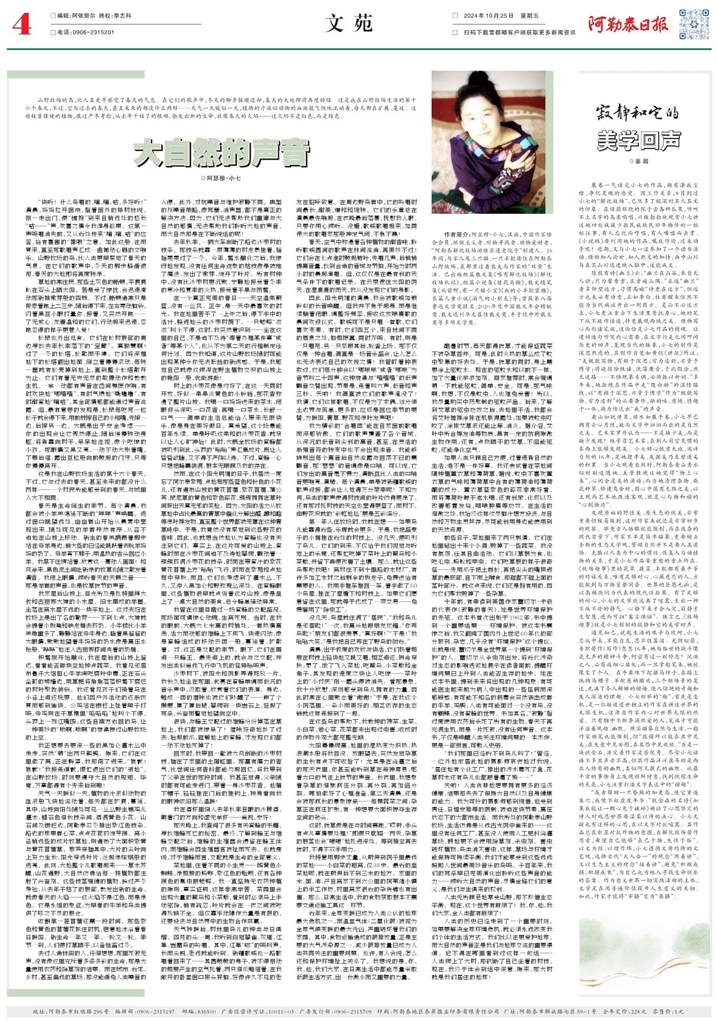 天呐!人类贪婪地想要拥有更多的经济健康,结果却失去了保持大自然以及自身健康的能力。我为可怜的摄影师感到惋惜,他受到责任、日程安排等的限制,被迫在快节奏、高压状态下的大都市生活。而我所处的阿勒泰山野牧场,生活仿佛是从远古光阴中偷来的——这里没有任何工厂,甚至没人使用人工肥料浇灌草场,耕地更不会使用除草剂、杀虫剂。害虫破坏植物、鸟类消灭害虫,这样,草场与环境才能保持可持续平衡,我们才能享受到这些远远超越人世间最美妙音乐的鸟鸣。千百年来,我们的耳朵早已完美演化出聆听这些声音的能力——倾听大自然的声音,尽情诠释它们的意义,是我们与生俱来的权利。