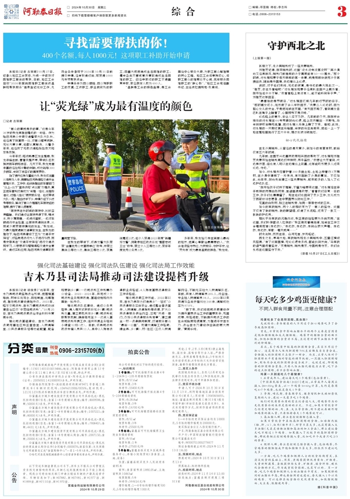 - 吉木乃县司法局推动司法建设提档升级 本报讯(记者 胡俊秀)“近年来,吉木乃县司法局坚持法治引领,把握强基导向,树牢系统观念,因地制宜,统筹推进,推动司法建设提档升级。2023年,喀尔交司法所、吉木