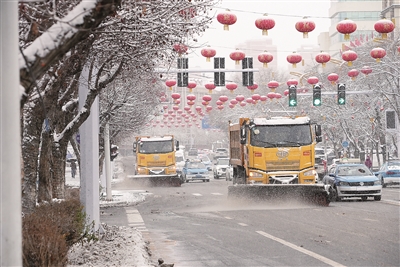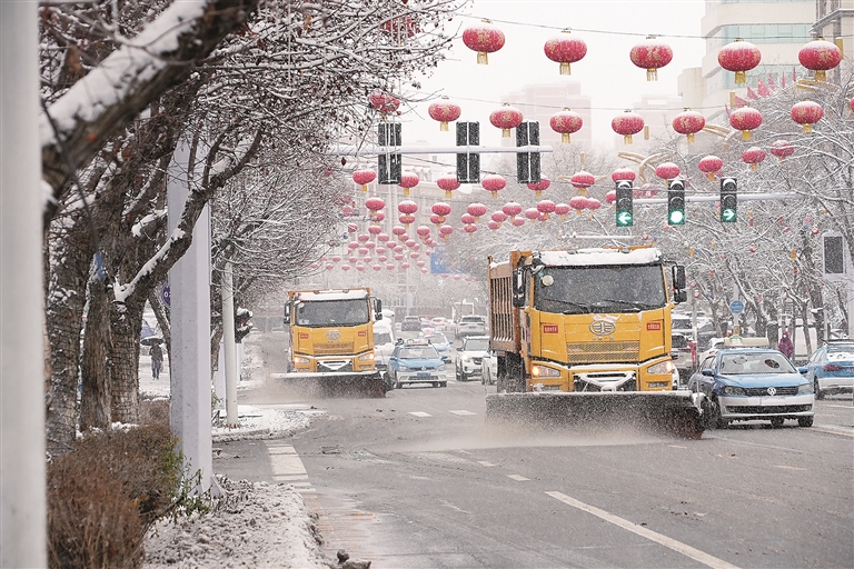 本报讯(记者 董世菊 特约记者 刘金锐 通讯员 李文强 叶尔肯·扎合帕尔)11月9日,在阿勒泰市区,众多环卫工人手持除雪工具,为广大市民清扫出一条条安全便捷的出行通道。同时,各类大型清雪设备通过梯次组合推进作业,对各主、次道路进行循环刷扫,确保市区道路车辆正常通行。