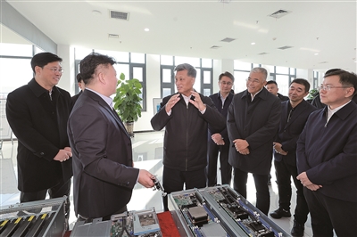 来到克拉玛依市云计算产业园区,马兴瑞听取园区建设发展情况介绍,实地考察碳和网络科技、克融云算等企业和中国移动克拉玛依智算中心,详细了解各企业参与云计算产业发展情况、科技创新成效和项目建设进展,并走进新疆科比特公司了解无人机组装生产工作。马兴瑞强调,发展新质生产力是推动高质量发展的内在要求和重要着力点。要加快以科技创新引领战略性新兴产业发展,推动算力产业集聚高效发展,不断催生新产业、新模式、新动能,加快形成新质生产力。要充分发挥新疆新能源优势,加快绿色电力与算力产业协调布局、融合发展,科学推进新型储能建设,有力支撑特色优势产业发展壮大。要充分发挥市场在资源配置中的决定性作用,更好发挥政府作用,持续深化放权赋能。