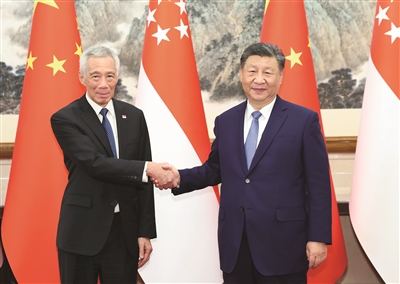 习近平积极评价李显龙担任新加坡总理期间带领新加坡取得显著成就,并长期关心和支持中新合作。习近平指出,去年我们共同确立了中新全方位高质量的前瞻性伙伴关系,为两国关系发展明确了战略方向。明年是中新建交35周年,双方要密切高层往来,进一步加强发展战略对接,深化各领域合作,为两国人民带来更多福祉,为地区和平繁荣作出更大贡献。