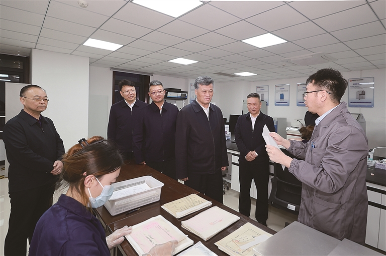 马兴瑞先后来到密码管理局、档案局、自治区国家保密局、自治区档案馆等单位,每到一处,他都详细听取工作介绍,走进业务处室及工作场所察看,与有关负责同志和干部职工深入交流,指导推动各单位进一步推进重点工作。他强调,安全保密、通信保障、档案管理等工作性质特殊、要求严格、责任极为重大。党委办公厅要深入学习贯彻习近平总书记“五个坚持”重要要求,切实强化政治担当,坚决扛起职责使命,高质量推进各项工作再上新台阶。要确保对党绝对忠诚,带头坚定拥护“两个确立”、坚决做到“两个维护”,始终将党和国家利益摆在首位,把绝对忠诚、绝对可靠熔铸进血脉中、落实到行动上。要提升服务保障水平,紧紧围绕大局、时时聚焦大局、处处服务大局,紧扣自治区党委重点工作,推动服务保障更专业、更精细、更高效,主动适应新形势新任务,强化科技创新和科技防护,坚决守住安全“生命线”,不断增强“三服务”效能。要努力建设一流机关,以更高标准、更严要求、更实措施加强自身建设,打造政治过硬、能力过硬、作风过硬的干部职工队伍,努力在各级党政机关中走在最前列、当好“排头兵”,建设让党放心、让人民满意的模范机关。