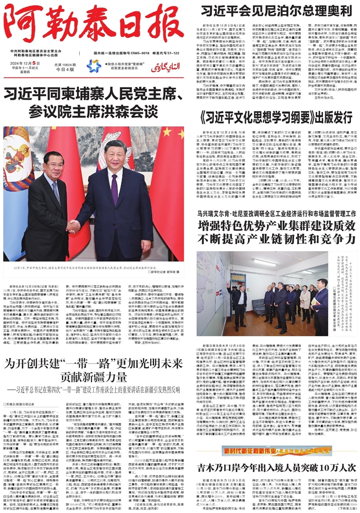 - 为开创共建“一带一路”更加光明未来 贡献新疆力量 □石榴云/新疆日报记者 12月2日,习近平总书记在第四次“一带一路”建设工作座谈会上的重要讲话在新疆引发热烈反响。大家认为,习近平总书记重要讲话立意高远、思想深邃、论述精辟、