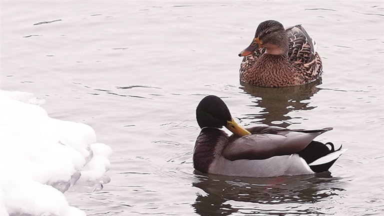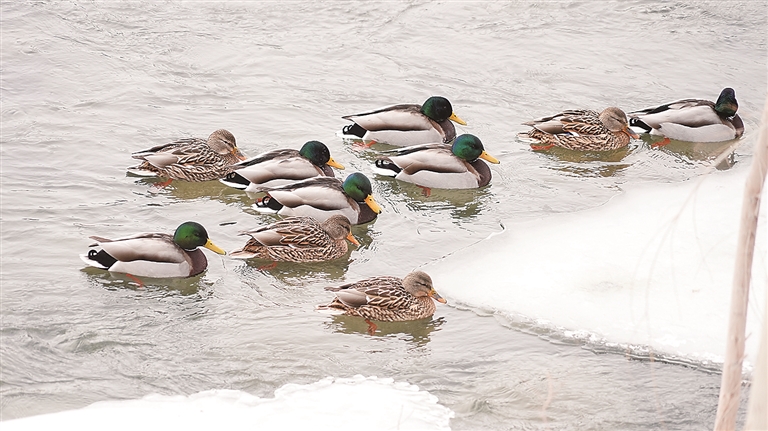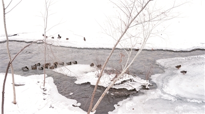 引来野鸭水中戏,嬉闹寒冬把“春”报……