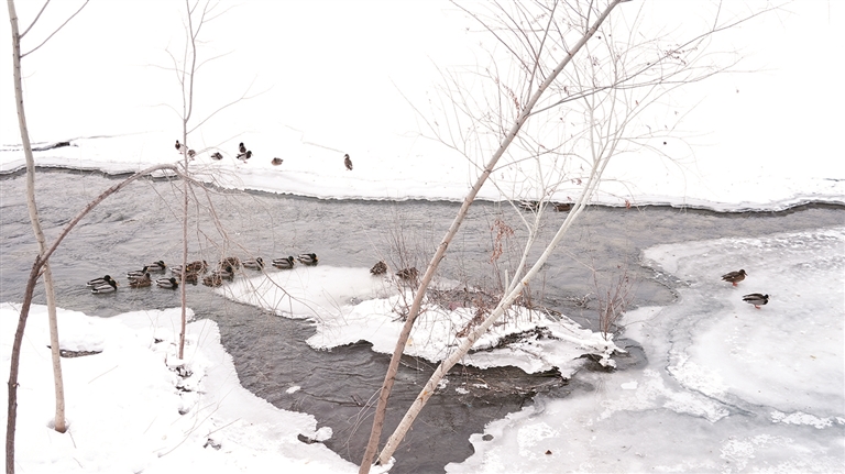 2025年第一天,阿勒泰市克兰河畔寒意中带着几分清新与宁静。一群野鸭在一片尚未完全冰封的河面上嬉戏游弋,它们或低头觅食,或振翅轻拍水面,或站在冰面梳理羽毛,吸引了不少市民及游客前来观看、拍照,为隆冬时节的雪都阿勒泰增添了几分生机与活力。