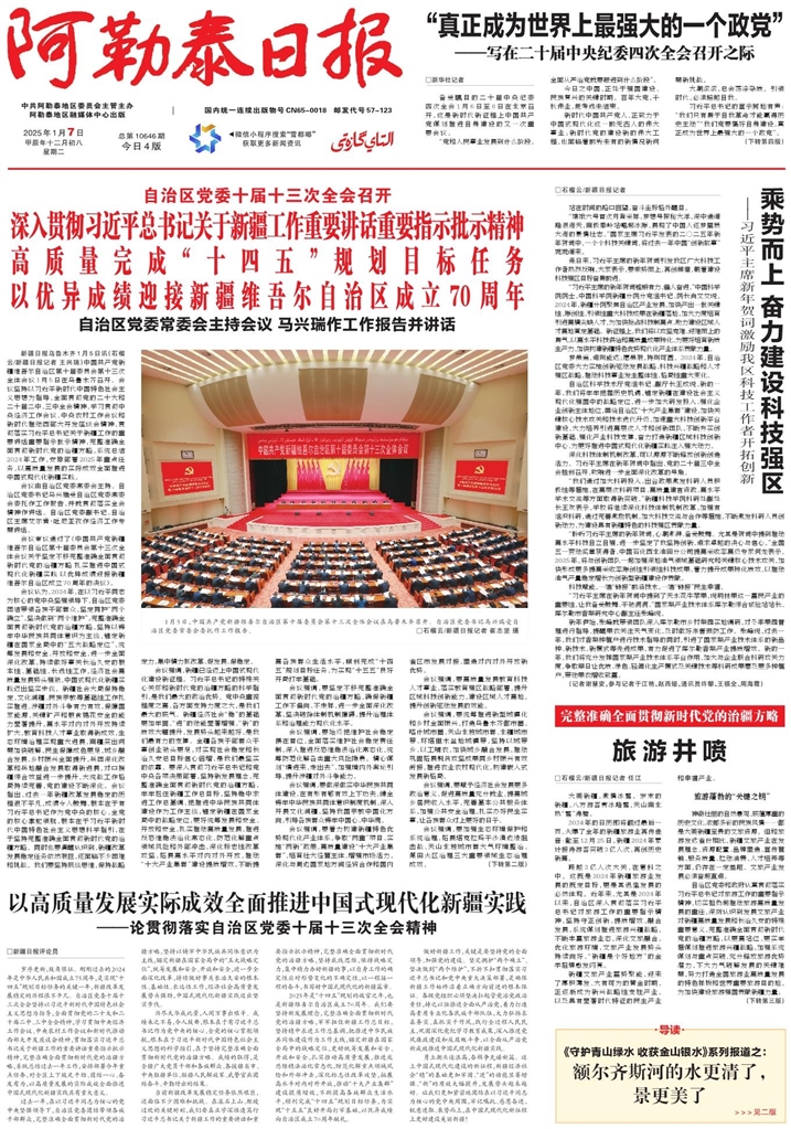 - 以高质量发展实际成效全面推进中国式现代化新疆实践 □新疆日报评论员 岁序更新,鼓角催征。刚刚过去的2024年是中华人民共和国成立75周年,是实现“十四五”规划目标任务的关键一年,新疆改革发展稳定的历程很不平凡。自治区党委十届