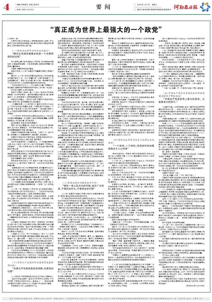 • “真正成为世界上最强大的一个政党”         (上接第一版)   这是我们党经过百年奋斗,特别是在新时代全面从严治党伟大实践中探索出的制胜之道,是我们党成功跳出历史周期率、实现长期执政的必由之路。      (一)党的自我革命为何