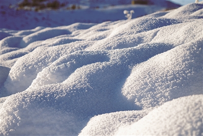 “捧起一把雪,雪花晶莹剔透,每一片都结实、饱满、富有弹性。阿勒泰的‘粉雪’松散干燥,在阳光下闪烁如碎钻美不胜收,走在上面咯吱咯吱作响,有种说不出的解压感。”陈晓燕说。
