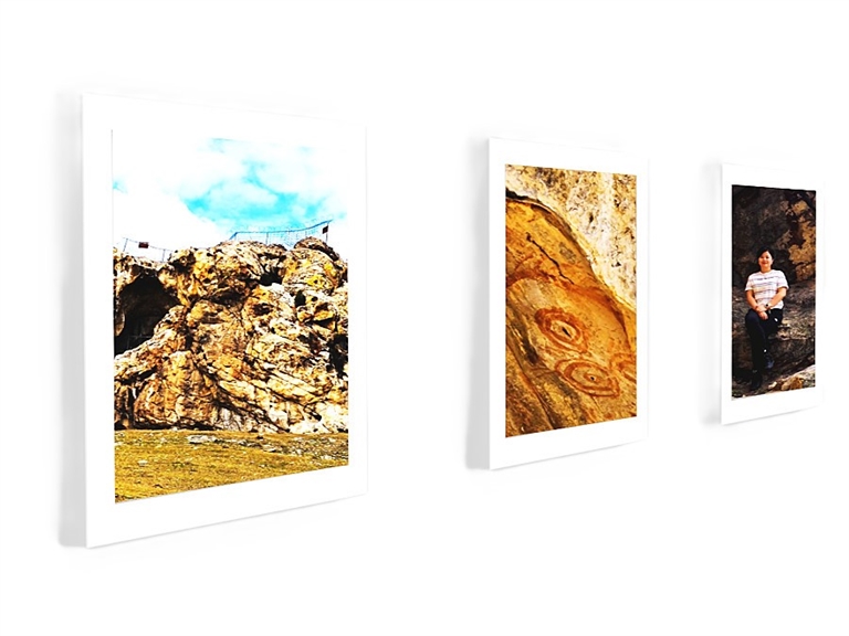 三只眼睛是人的心灵之眼,还是天地之间的“万物之眼”,又或是渺小卑微者颇具仪式感的虔诚心,更是对小人物的敬意和尊重的抽象表达。红白线勾勒的椭圆,圈套圈、圆套圆,看着看着,我入迷且出神,旋转之余有些眩晕。有学者云云,眼前的彩绘岩画是古人朴素的自然观,或是特殊的天体现象……