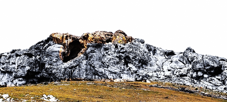 千万不要小瞧了我的“巨人”朋友。其体型虽魁梧、壮硕,可爬起乱石山坡,那可是灵巧、轻松。我大口大口地喘着气、屁颠屁颠地跟在其后,小心又小心、谨慎又谨慎,生怕踩个空或四脚朝天,影响向洞穴前进的步伐和进度。洞穴位于半山腰,距地面约30米,海拔高度超过1100米。我顾不得仪态,抛开讲究,手脚并用地“狗刨”。我们从洞穴顶部绕到洞穴口,其中经过几处悬崖和石头间隙。处处是挑战,而我们心中只有一个念想——绝不能放弃,更不能半途而废。无论“巨人”还是“小矮人”,那坚定的信念,比洞穴的石头还要坚硬。