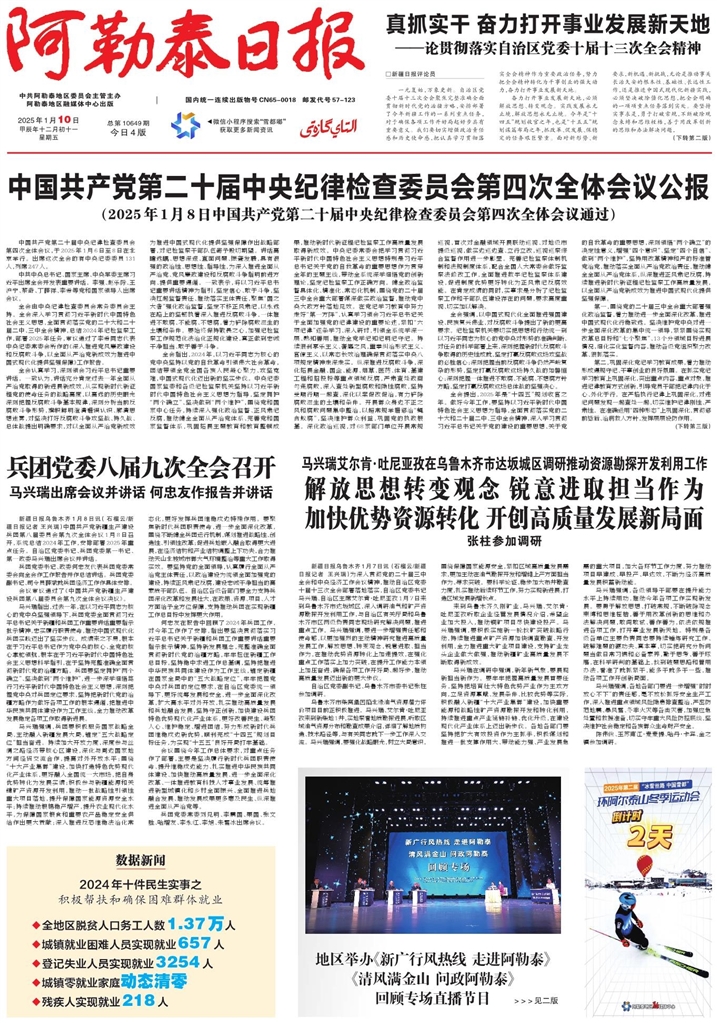 - 解放思想转变观念 锐意进取担当作为 加快优势资源转化 开创高质量发展新局面 新疆日报乌鲁木齐1月7日讯 (石榴云/新疆日报记者 王兴瑞)为深入贯彻党的二十届三中全会和中央经济工作会议精神,推动自治区党委十届十三次全会部署落地落实,自治区党委书记马兴瑞、自