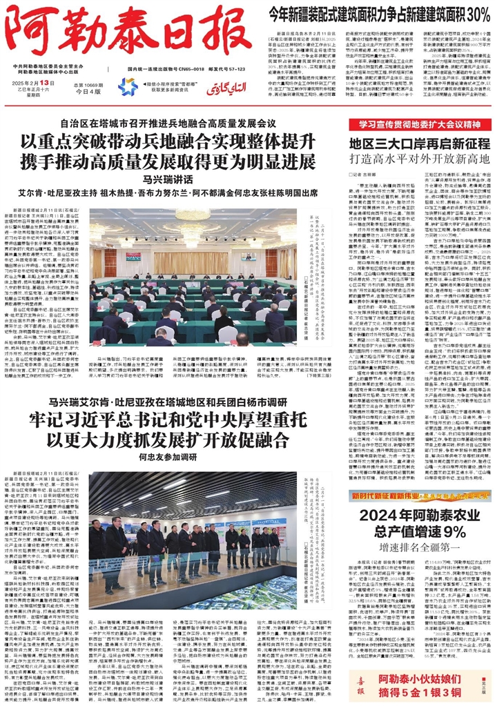 新疆日报塔城2月11日讯(石榴云/新疆日报记者 王兴瑞)2月11日,自治区在塔城市召开推进兵地融合高质量发展会议暨兵地融合发展工作领导小组会议,进一步动员和推动兵地各级深入学习贯彻习近平总书记关于新疆和兵团工作重要讲话重要指示批示精神,完整准确全面贯彻新时代党的治疆方略,推动兵地融合高质量发展取得更大成效。自治区党委书记、兵团党委第一书记、第一政委马兴瑞出席会议并讲话。他强调,要坚决贯彻习近平总书记和党中央决策部署,坚持从政治上考量、战略上审视、全局上谋划、整体上推进,把兵地融合发展作为事关长治久安的根本性、基础性、长远性工作,持续加力提效、攻坚克难,以重点突破带动兵地融合实现整体提升,合力推动高质量发展取得更为明显进展。