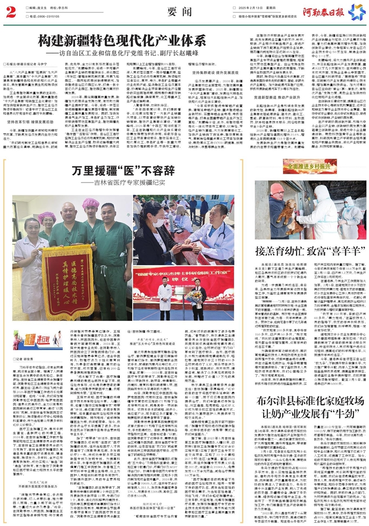 - 万里援疆“医”不容辞 □记者 胡俊秀 习近平总书记指出,没有全民健康,就没有全面小康。强调了人民健康在社会发展中的优先地位。新年伊始,吉林省卫生健康委员会援疆干部,