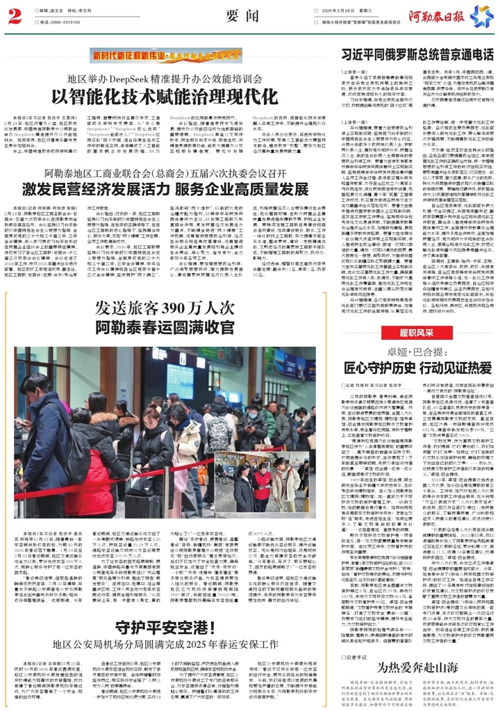 - 以智能化技术赋能治理现代化 本报讯(实习记者 包洪宇 王景鸿)2月24日,地区行署办公室、地区数字化发展局、中国电信阿勒泰分公司联合举办DeepSeek精准提升办公效能培训会。地委委员、地