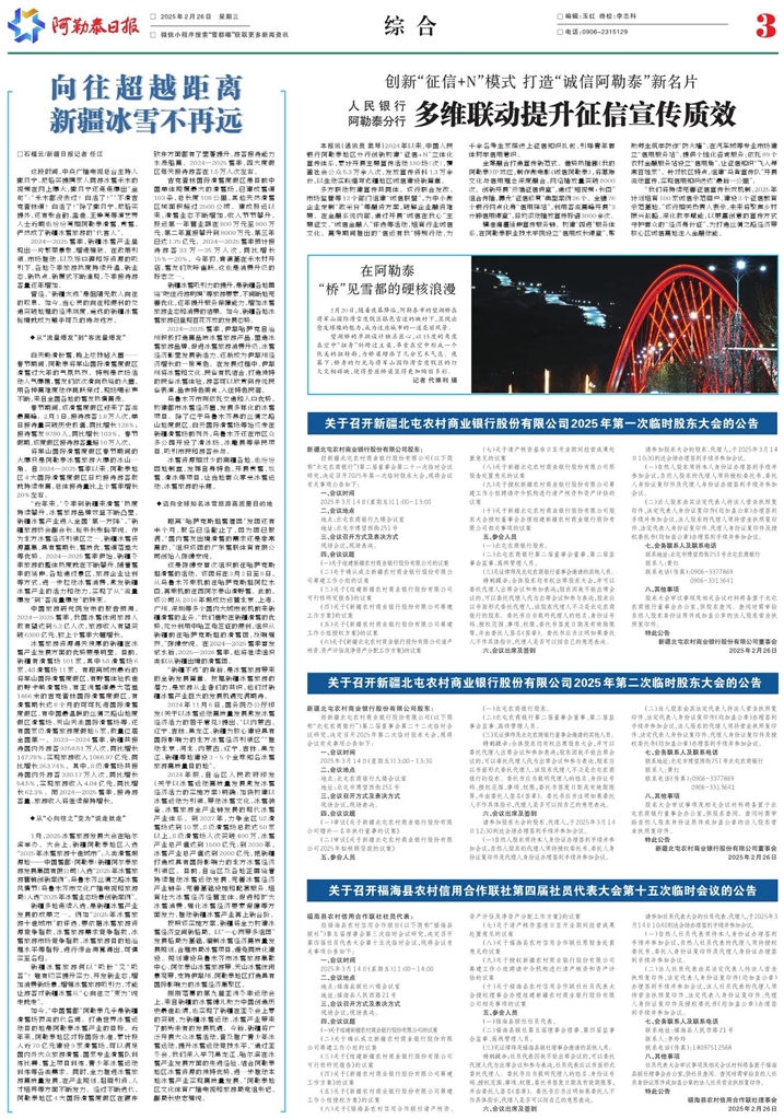 - 关于召开新疆北屯农村商业银行股份有限公司2025年第二次临时股东大会的公告 新疆北屯农村商业银行股份有限公司股东: 经新疆北屯农村商业银行股份有限公司(以下简称“北屯农商银行”)第二届董事会第二十二次临时会议研究,决定召开2025年第二次临时股东大会,现将