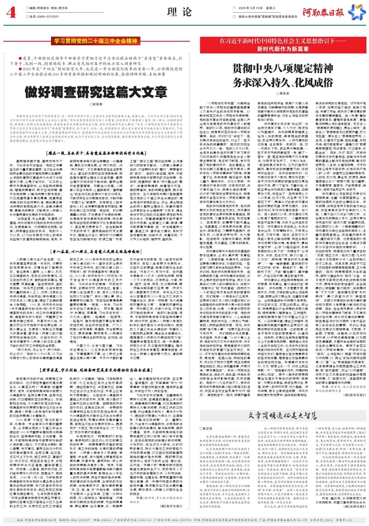 - 做好调查研究这篇大文章 ●党员、干部特别是领导干部要学习贯彻习近平总书记提出的两个“弄清楚”重要要求,扑下身子、沉到一线,到困难较多、群众意见相对集中的地方深入调查研究 ●2025年是“十四五”规划收官之