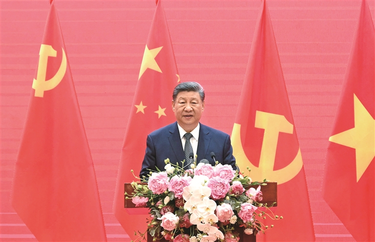 习近平强调,中越友好在两国人民守望相助中生根发芽,两国人民在争取国家独立和民族解放的正义事业中并肩战斗,给“同志加兄弟”的深厚情谊印染了鲜红底色。中越友好在两国人民团结协作中开花结果,双方锚定“六个更”总体目标,坚定支持彼此走符合本国国情的社会主义道路,不断取得社会主义建设事业新成就。中越友好在两国人民共同追求中传承升华,双方积极践行全球发展倡议、全球安全倡议、全球文明倡议,坚定捍卫国际公平正义,始终坚定站在历史正确一边、时代进步一边,为亚洲和世界提供了更多正能量。