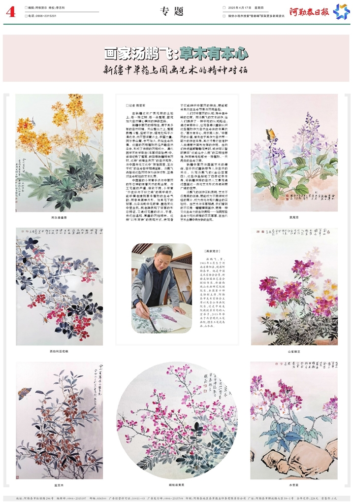 新疆中草药与国画艺术的邂逅,启示我们重新思考人与自然的关系。纵观汤鹏飞的《金山百草图》,这些作品超越了图像记录本身,将新疆独特的自然人文景观通过国画这一传统艺术形式传递到更广阔的世界。