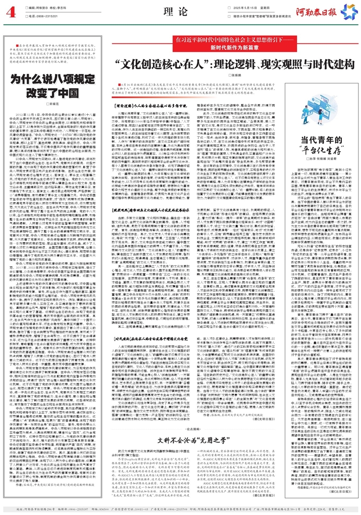 - “文化创造核心在人”:理论逻辑、现实观照与时代建构 □张振鹏 ■4月16日出版的《求是》杂志发表习近平总书记的重要文章《加快建设文化强国》,强调“始终坚持文化建设着眼于人、落脚于人”,并明确提出“文化创造核心在人”。“