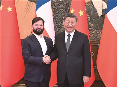 博里奇表示,智利高度重视对华关系。中国已成为智利最重要的贸易伙伴,双方合作造福了两国人民。智方将坚定奉行一个中国原则,期待与中方进一步拓展贸易、投资、人工智能等领域合作,高质量共建“一带一路”,密切人文交流,推动智中关系取得更多实实在在的成果。各国应坚持自由贸易和互利共赢,贸易不应只服务于一国私利,发动贸易战没有出路。智方愿同中方一道,坚定捍卫多边主义和联合国权威,坚持通过对话解决分歧,共同维护国际公平正义。