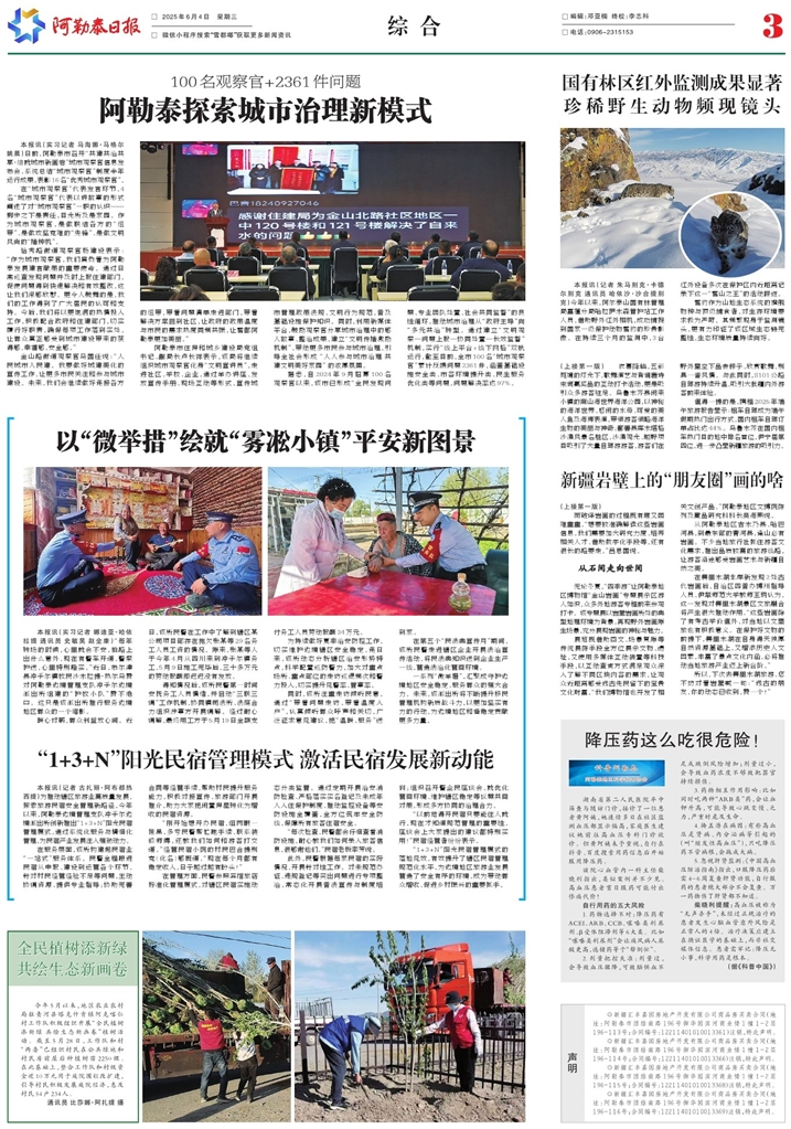 本报讯(实习记者 马海娜·马格尔 姚晨)日前,阿勒泰市召开“共建共治共享·绘就城市新画卷”城市观察官信息发布会,系统总结“城市观察官”制度半年运行成果,表彰16名“优秀城市观察官”。