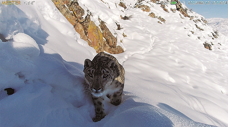 本报讯(记者 朱马别克·卡德尔别克 通讯员 哈依沙·沙合提别克)今年以来,阿尔泰山国有林管理局富蕴分局哈拉萨木森管护站工作人员,借助野外红外相机,成功捕捉到国家一级保护动物雪豹的珍贵影像。在持续三个月的监测中,3台红外设备多次在保护区内近距离记录下这一“雪山之王”的活动踪迹。