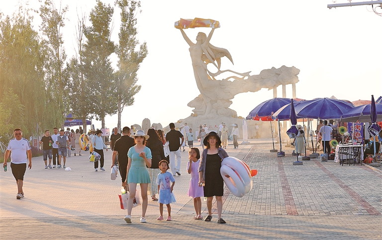“完全没想到在新疆还能体验到‘海滨度假’的感觉!”广东游客王先生兴奋地说,“湖水清澈见底,沙滩柔软舒适,加上凉爽的风,真是舒服极了!”