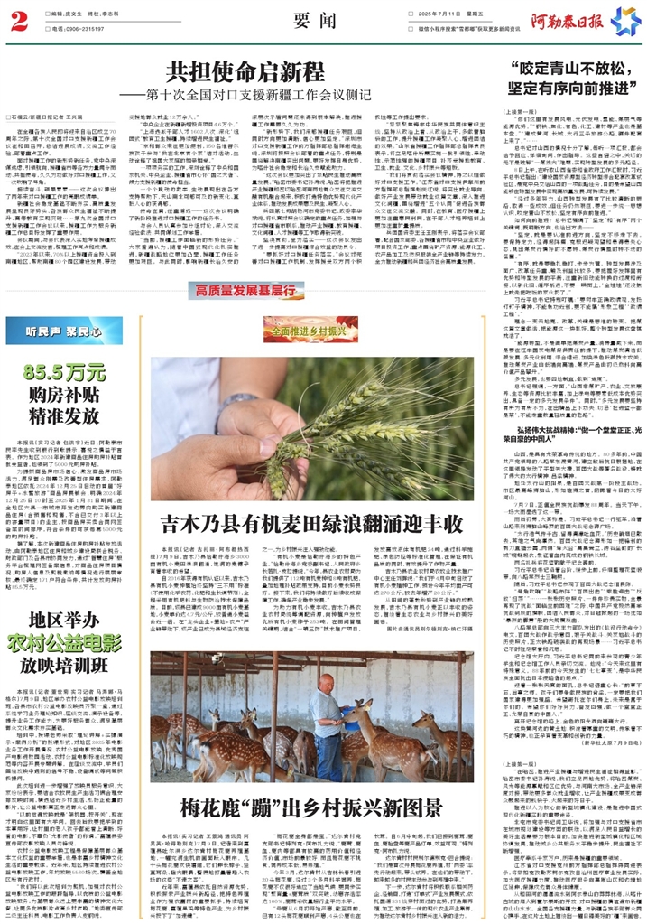 从和田河的潺潺流水到阿尔泰山的莽莽林海,从喀什古城的烟火到霍尔果斯的开放,对口援疆的情谊遍布新疆的山山水水。全国各支援疆力量,与新疆各族干部群众同心携手,在这片土地上描绘出一幅日臻美好的“疆”来画卷。