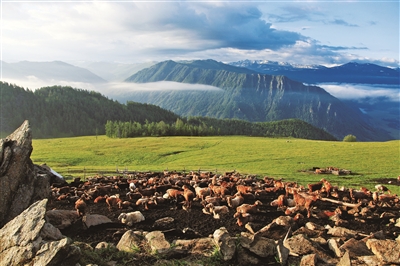春生夏长,秋收冬藏。阿勒泰羊的繁育与兴盛,得益于阿勒泰地区丰美的天然草原,以及得天独厚的自然环境与气候条件。为让羊群享用最鲜嫩的“时令牧草”,当地牧民循四季更迭之序,在荒漠草原、山地草甸与高寒牧场之间辗转迁徙。这份“尝百草”的天然食谱,使阿勒泰羊体内悄然累积了丰富的风味物质,丝丝渗透肌理。阿勒泰广袤的草原如同天然的“风味工坊”,赋予其独一无二的口感——这是自然酝酿的醇厚,是无可复制的鲜美。