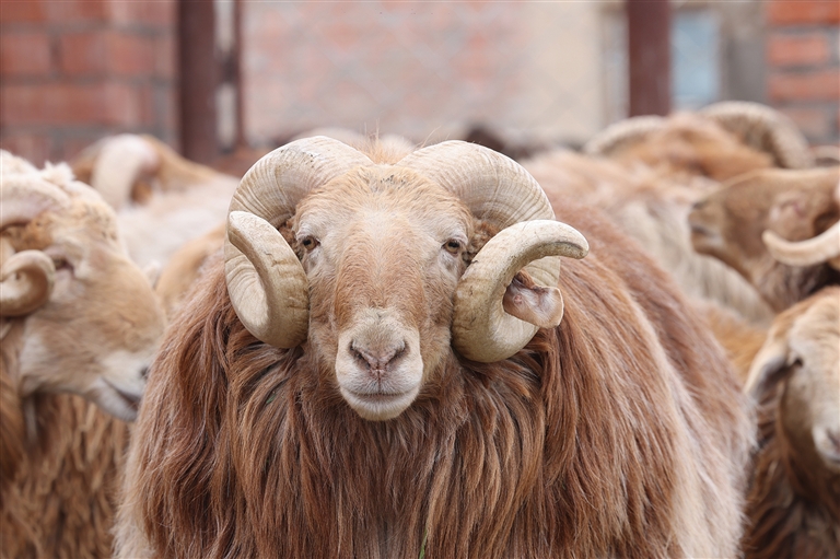 阿勒泰羊属肉脂兼用型地方绵羊良种,其头部大小适中,前额略窄,双耳宽大下垂,偶见小耳个体;公羊角粗壮卷曲呈螺旋状,母羊角短小锐利;肌肉发达匀称,四肢长而挺拔,蹄质坚实紧凑,臀部圆润下垂。毛色以棕红为主,间有纯白、玄黑及杂色;其肉质细嫩无膻,脂香温润,实为羊肉中的上品。