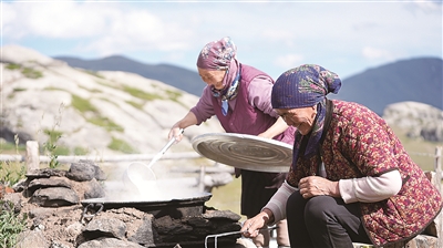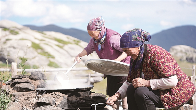 清晨时分,袅袅炊烟从毡房升起,农牧民开启了一天的牛羊牧放、擀毡子、制作奶制品等劳作,勾勒出一幅美好生活图景。