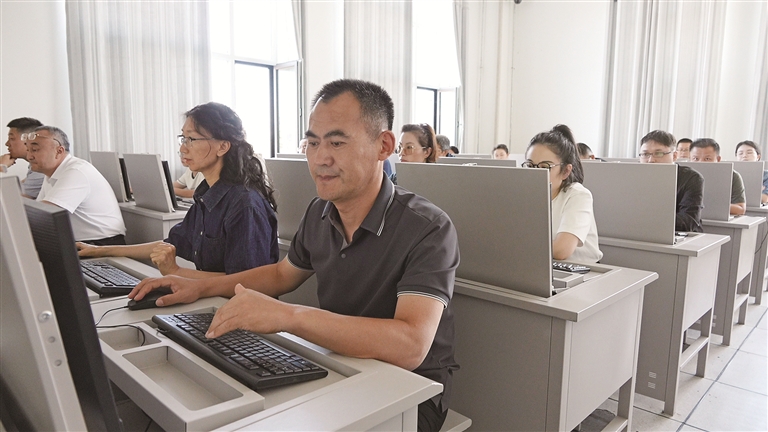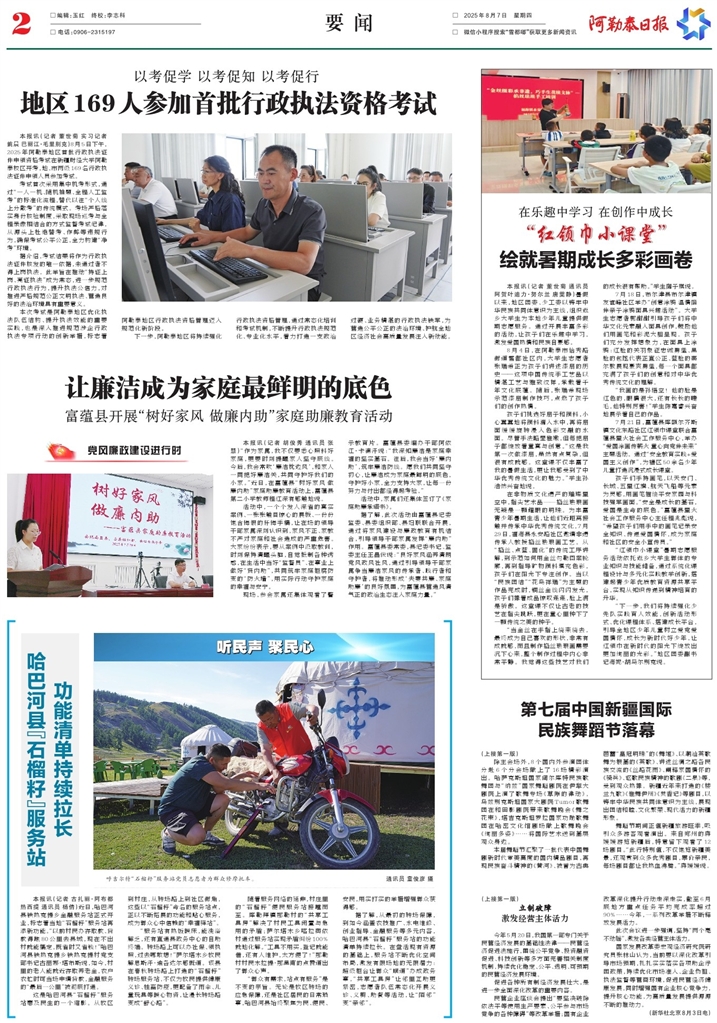 本报讯(记者 董世菊 实习记者 姚晨 巴丽江·毛里别克)8月5日下午,2025年阿勒泰地区首批行政执法证件申领资格考试在新疆财经大学阿勒泰校区开考,地、市两级169名行政执法证件申领人员参加考试。
