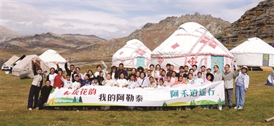 阳光穿透云层倾泻而下,学生们在草地上搭建帐篷、开展阿禾知识问答与拔河比赛,并用画笔描绘眼前的草原,把所见所感融入画作,创作完成“我心目中的阿禾公路”。百顶帐篷沿草地错落排开,宛如散落在绿色地毯上的彩色贝壳,笑声与风声交织成欢快的乐章。此刻的阿禾公路沿线,不仅有旷野山风,更有因欢笑与陪伴而愈发温暖的人间烟火。