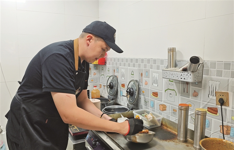 如今,吾拉热经营的小店飘散的馕香与肉香成为街头响当当的“诚信招牌”。每天清晨,他都细致检查牛羊肉品质,严把食材关;为调出最佳口感,他辗转走访十余位烧烤师傅虚心取经;即便遇到物价波动,也坚持不减分量,宁可压缩利润也要留住口碑。这份执着赢得了顾客们的一致认可:“小老板的烤串儿实在,就像他做人一样!”