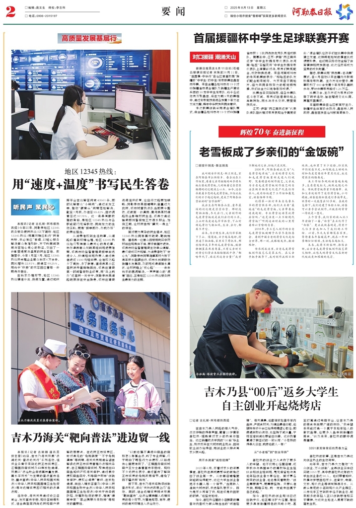 - 用“速度+温度”书写民生答卷 本报讯(记者 古扎丽·阿布都热西提)今年以来,阿勒泰地区12345政务服务便民热线(以下简称:地区12345热线)用高效响应践行“民有所呼、我必有应”承诺,以贴