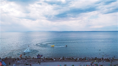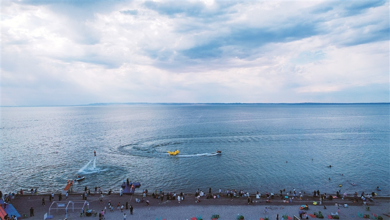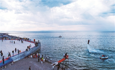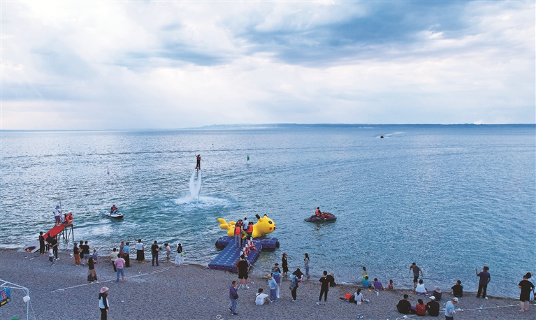 水上游玩项目吸引众多游客参与。