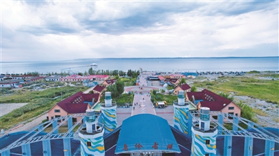 福海县乌伦古湖黄金海岸景区一角。