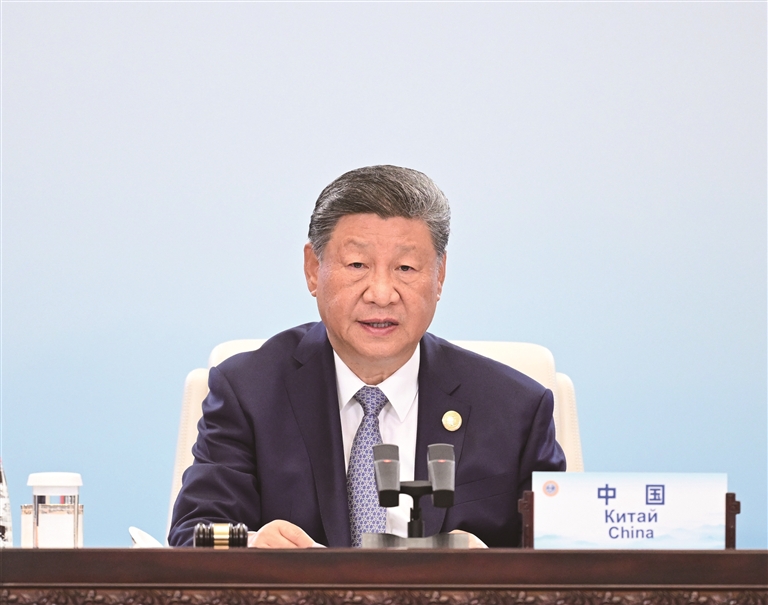 五是坚持务实高效。持续推进上海合作组织改革,加强资源投入和能力建设,让组织机制更完善、决策更科学、行动更高效,为成员国安全和经济合作提供更有力支撑。