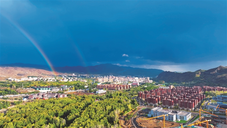 双虹贯日,双重彩虹,双倍幸运。9月1日,阿勒泰市雨后出现绝美“双彩虹”,主虹色彩绚烂如天边画带,副虹朦胧相伴,“双彩虹”横跨城市,与乌云形成震撼对比。这一刻仿佛大自然按下暂停键,为阿勒泰加满浪漫滤镜。