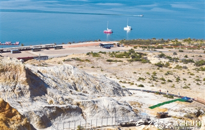 石榴云/新疆日报讯(记者 汤永文/图)9月8日,天高云淡,福海县乌伦古湖海上魔鬼城与金沙滩景区在蓝天碧水的映衬下更显壮美。雅丹地貌的神秘峡谷与海滨的辽阔风光相映成趣,吸引众多游客前来感受大自然的鬼斧神工。