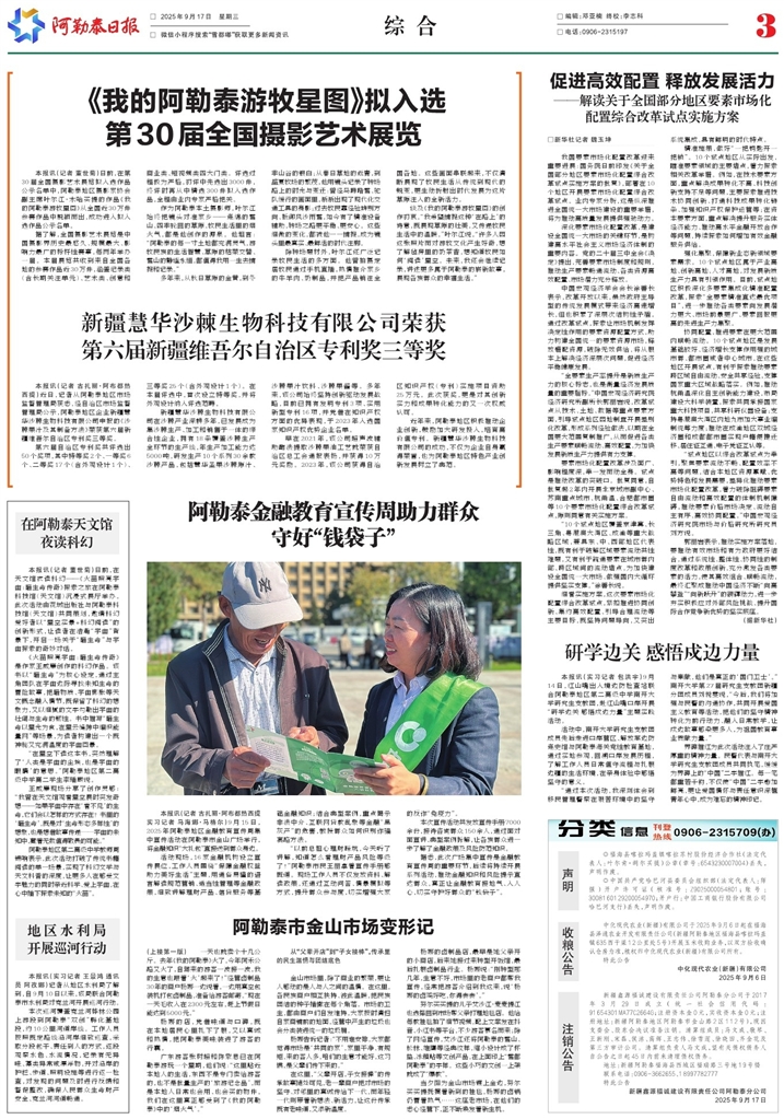 - 阿勒泰金融教育宣传周助力群众 守好“钱袋子” 本报讯(记者 古扎丽·阿布都热西提 实习记者 马海娜·马格尔)9月15日,2025年阿勒泰地区金融教育宣传周集中宣传活动在阿勒泰市金山广场举行,将金融知识“大礼包”直接送到群众身