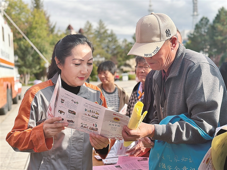 同日,由地区住建局(人防办)牵头,联合地区国防动员办公室、阿勒泰市住建局,在阿勒泰市金山广场组织开展“9·18”人民防空警报试鸣暨人防知识宣传活动。工作人员通过设立咨询台、发放宣传资料、布置展板等形式,向过往群众宣传人民防空相关法律法规、防空防灾知识以及应急自救互救技能。现场气氛热烈,大家积极参与,纷纷驻足观看展板、领取宣传资料,并就人民防空问题与工作人员交流咨询。
