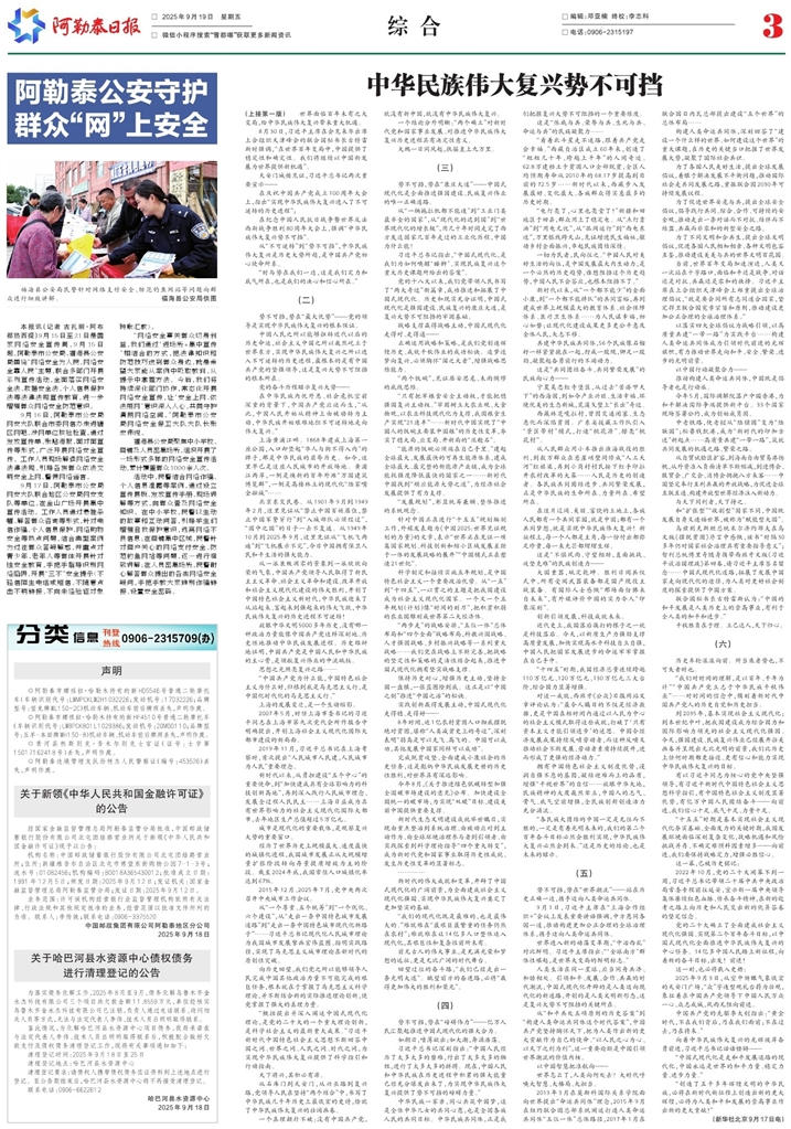 - 中华民族伟大复兴势不可挡 (上接第一版) 世界面临百年未有之大变局,给中华民族伟大复兴带来重大机遇。 8月30日,习近平主席在会见来华出席上合组织天津峰会的联合国秘书长古特雷斯时强调,“在世界百年变