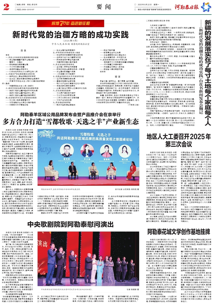- 多方合力打造“雪都牧歌·天选之羊”产业新生态 本报讯(记者 古丽娜 阿丽娜·阿依登 实习记者 占尼别克·别热克)在新疆维吾尔自治区成立70周年之际,9月20日,阿勒泰羊区域公用品牌发布会暨产品推介会在北京举行。本次发布会以“雪