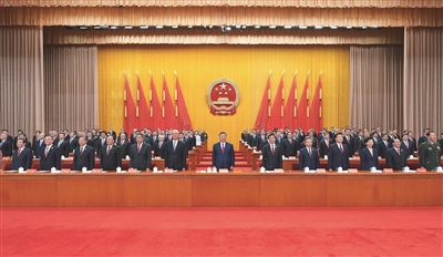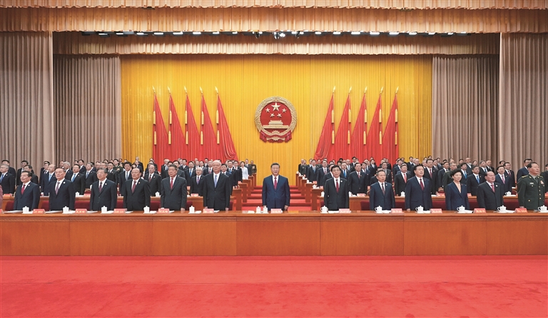 上午10时30分许,在欢快的乐曲声中,习近平等领导同志走上主席台,全场响起长时间的热烈掌声。