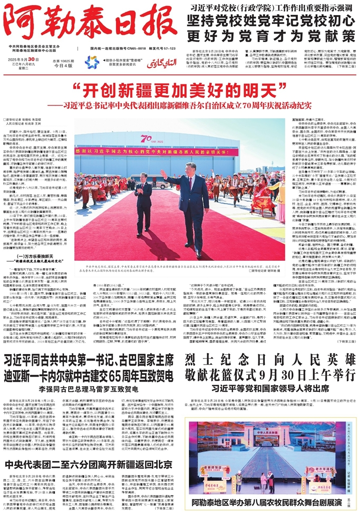 - “开创新疆更加美好的明天” □新华社记者 张晓松 朱基钗 人民日报记者 杜尚泽 王洲 时值秋分,阳光灿烂,碧空澄澈。9月23日,当习近平总书记乘坐的专机,缓缓降落在乌鲁木齐天山国